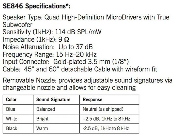 The high-end Shure SE846 adopts a four-driver design and a three-way configuration. Via an innovative low-pass filter, Shure claims that the SE846 is able to achieve the low-end performance of a true subwoofer.