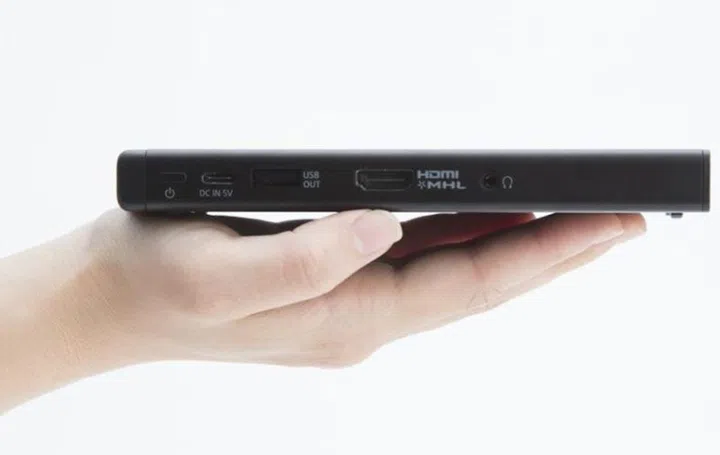Measuring just 83.0 mm x 16.0 mm x 150.0 mm and weighing only 280g, Sony’s new ultraportable MP-CD1 certainly lives up to its name. Easily fitting into the palm of your hand, this tiny projector uses Texas Instruments DLP IntelliBright technology to deliver bright and clear images for up to two hours at a time using its built-in 5000mAh battery.
