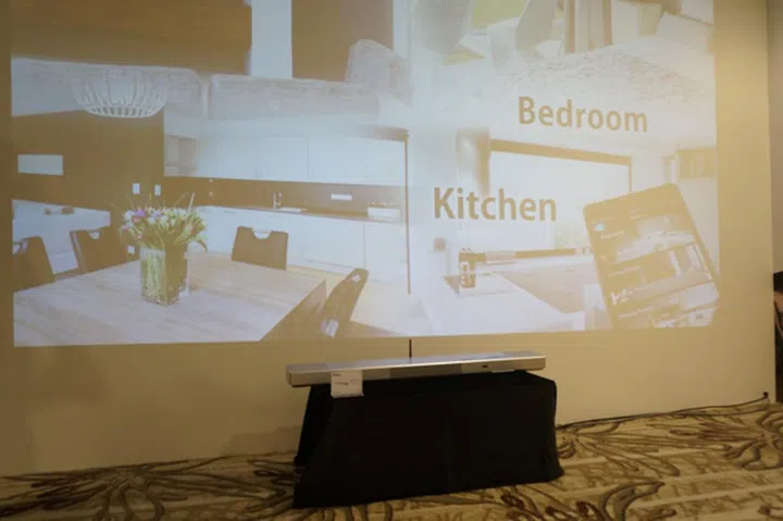 Moving next door, we saw Yamaha’s YSP-1600 MusicCast, a slim wireless-enabled sound bar that was paired up with a projector for an immersive viewing experience without needing the space of a large TV. The YSP-1600 offers HDMI with 4K Ultra HD pass-through and HDCP 2.2, so it can power your movies and videos while also being used for wireless music streaming from services like Spotify and Pandora.