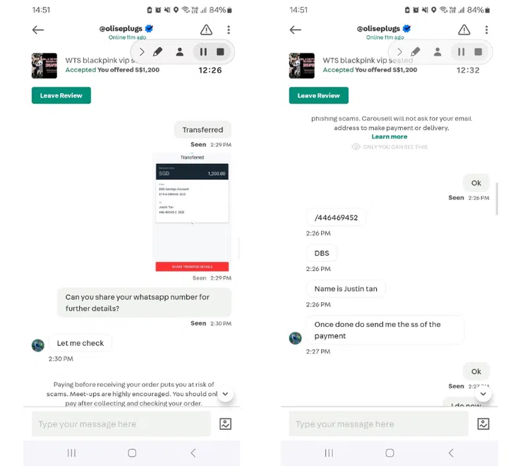 During the Jacky Cheung’s 60+ concert tour held in Singapore in 2023, at least 45 scam reports were made, with the total losses amounting to at least S$42,000. Victims would come across offers for the sale of concert tickets on messaging or social media platforms, such as Carousell, Xiaohongshu, Facebook, WhatsApp, and on websites like Viagogo.