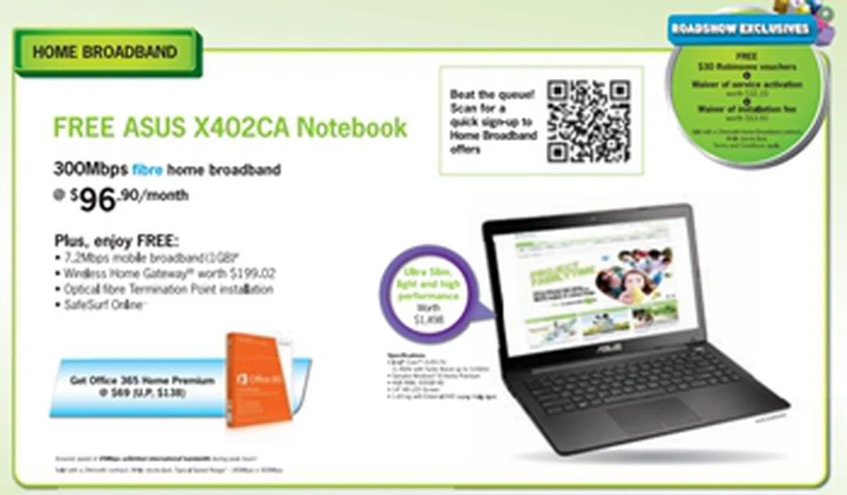 StarHub 300Mbps Fibre Home Broadband Sign up for StarHub 300Mbps Fibre Home Broadband with a two-year contract and get a free ASUS X402CA notebook.IT Show 2013 Offer