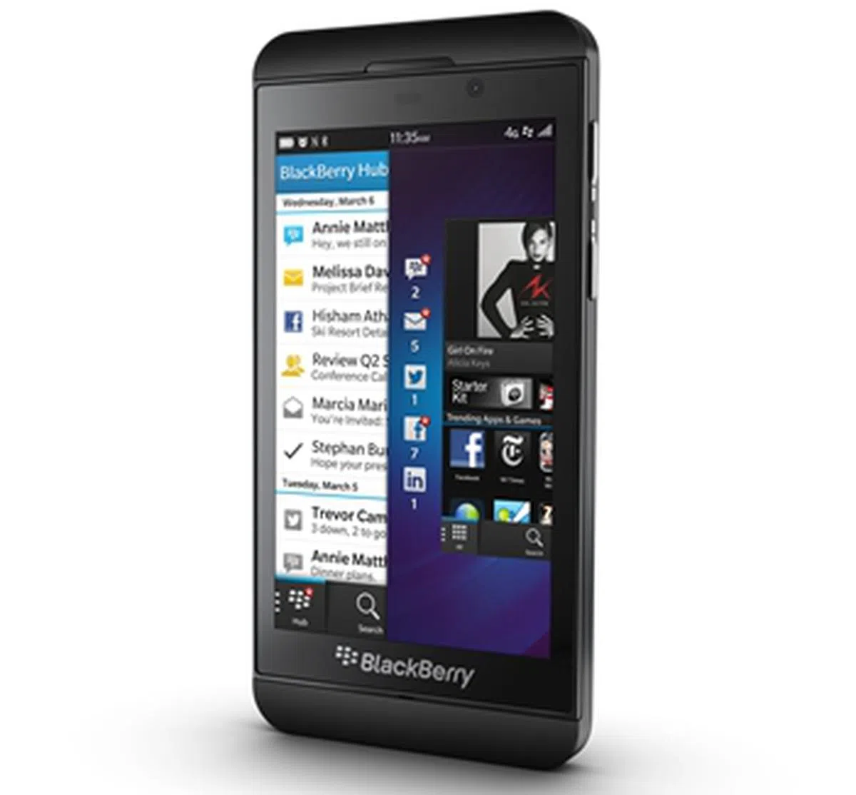 BlackBerry Z10 The first BlackBerry device to be powered by BlackBerry 10, the Z10 sports a highly intelligent keyboard that learns and adapts to your typing style. The user interface is navigated via a series of swipe gestures, making physical navigation keys like a home button useless.IT Show 2013 Offer