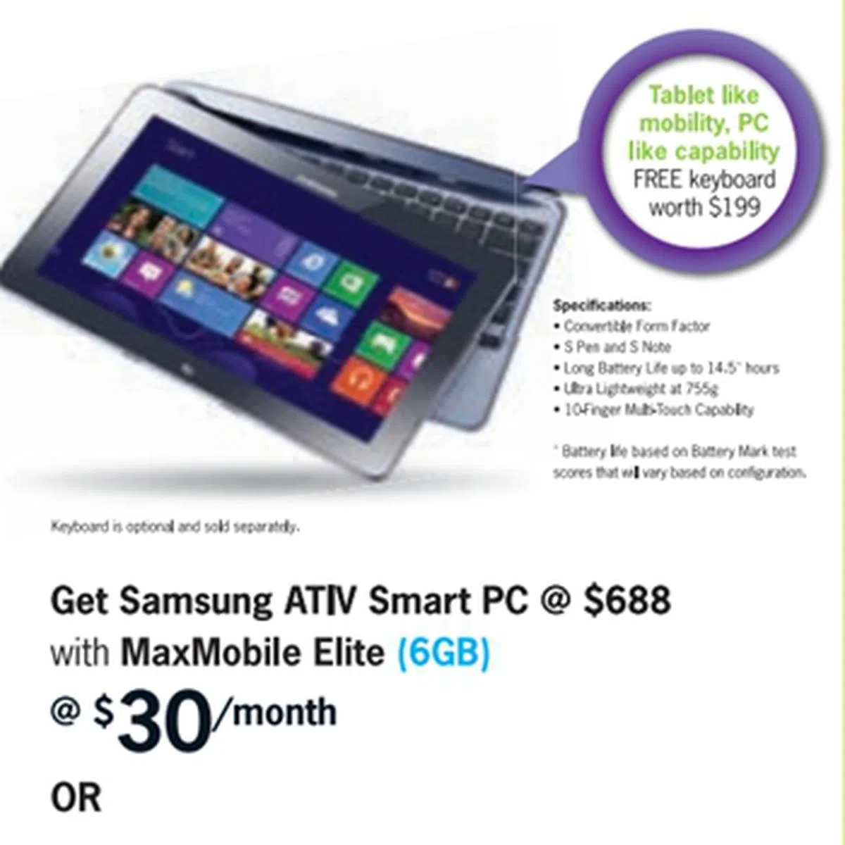 Location LEVEL 1, BOOTH 1532 | Samsung Ativ Smart PC Powered by the Intel Atom Z2760 processor, the 11.6-inch ATIV Smart PC (3G) runs on the Windows 8 OS, and features a 10-point touchscreen along with a optional detachable keyboard-docking system which enables easily switching between a clamshell notebook PC and a tablet PC.IT Show 2013 Offer