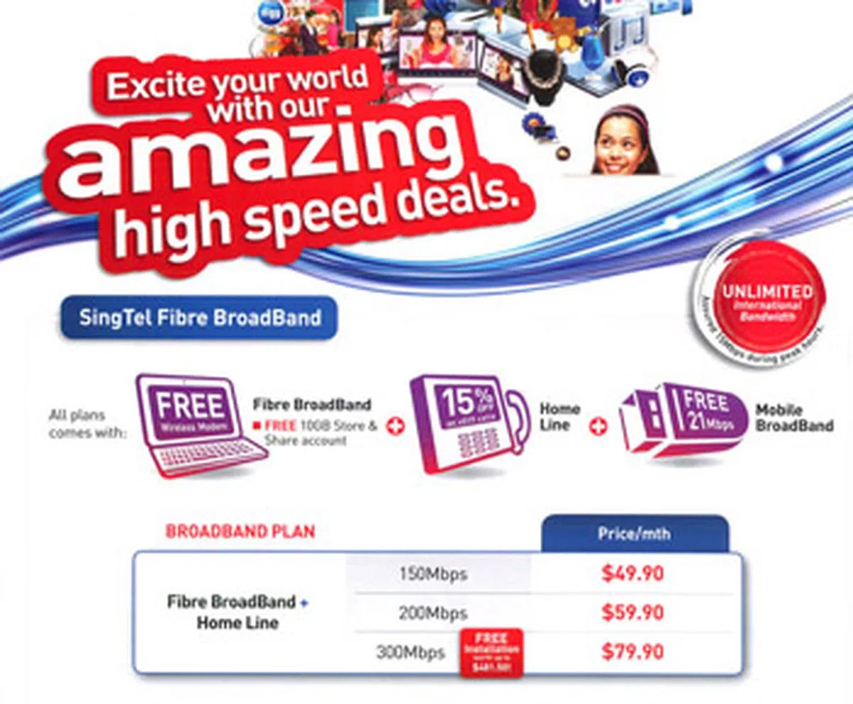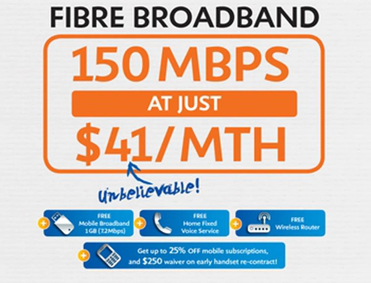SingTel 150Mbps Fibre Broadband An affordable 24-month contract of SingTel 150Mbps Fibre Broadband at $49.90/month.IT Show 2013 Offer