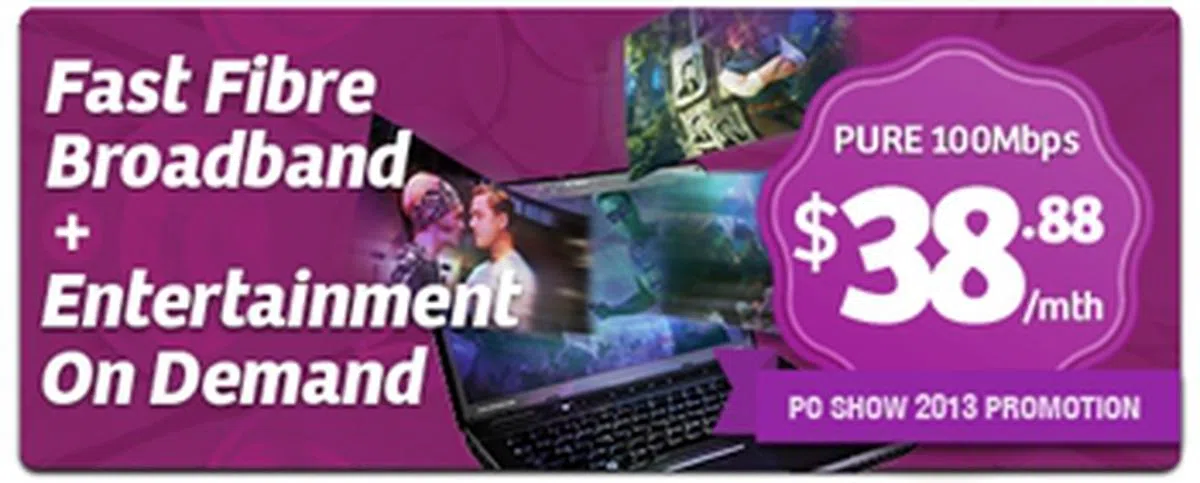 MyRepublic PURE 100Mbps Fibre Broadband Up to 100Mbps download and 50Mbps upload speeds with more bandwidth for more users streaming HD video. PC Show 2013 Offer
