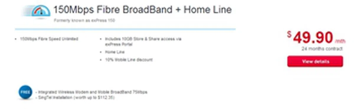 SingTel 150Mbps Fibre Broadband An affordable 24-month contract of SingTel 150Mbps Fibre Broadband at $49.90/month with 10% discount on your mobile subscriptionPC Show 2013 Offer
