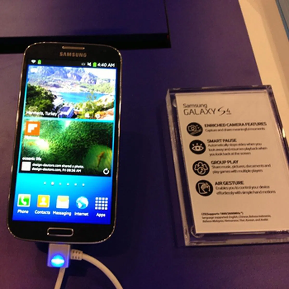 | Samsung Galaxy S4 Driven by a Qualcomm Snapdragon 1.9GHz quad-core processor, the 5-inch Samsung Galaxy S4 runs on the Android 4.2.2 Jelly Bean platform, and includes a 13-megapixel camera along with proprietary features such as Group Play, ChatON, and S Travel. PC Show 2013 Offer