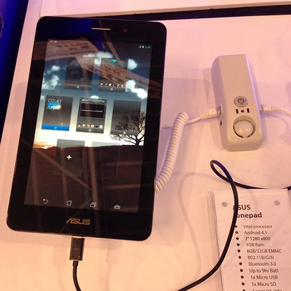 Location HALL 6, BOOTH 6006 | ASUS Fonepad The ASUS Fonepad is the world's first 7-inch tablet to be powered by Intel Lexington processor. It runs on Android 4.1.2 Jelly Bean and has cellular data connectivity.PC Show 2013 Offer