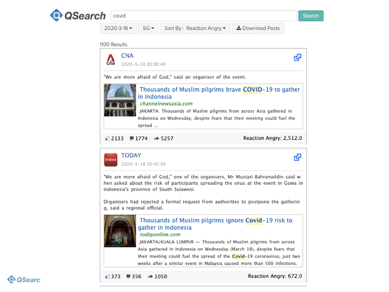QSearch, a social listening tool that services policy makers, academics, researchers, by trawling social media platform for sentiments on hot-button issues.