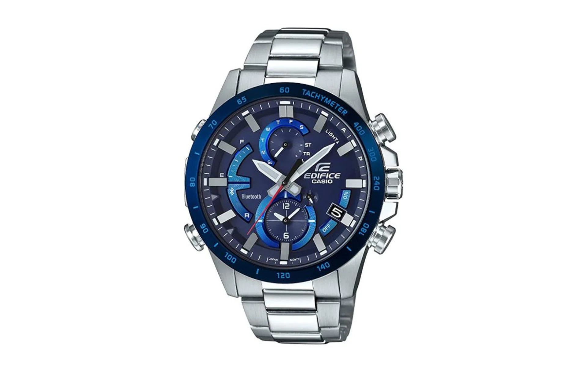 The Casio Edifice is an innovative solar watch that charges when you are out in the sun, so you never run out of juice. It also links to a mobile device and synchronises the watch four times a day to ensure accurate time display.