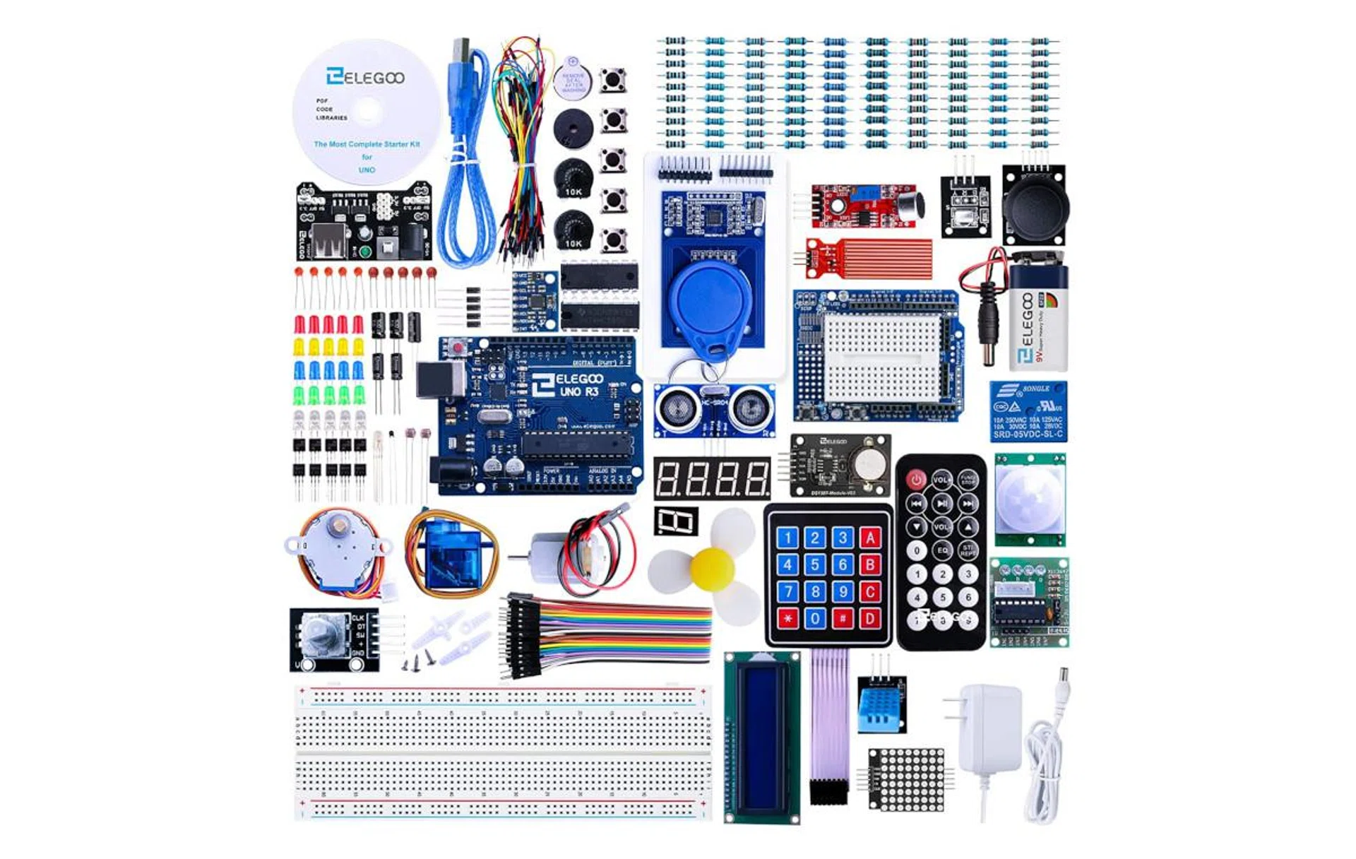Learn electronics with this starter kit, which comes with more than 30 tutorials and 63 electronic components to get you started.