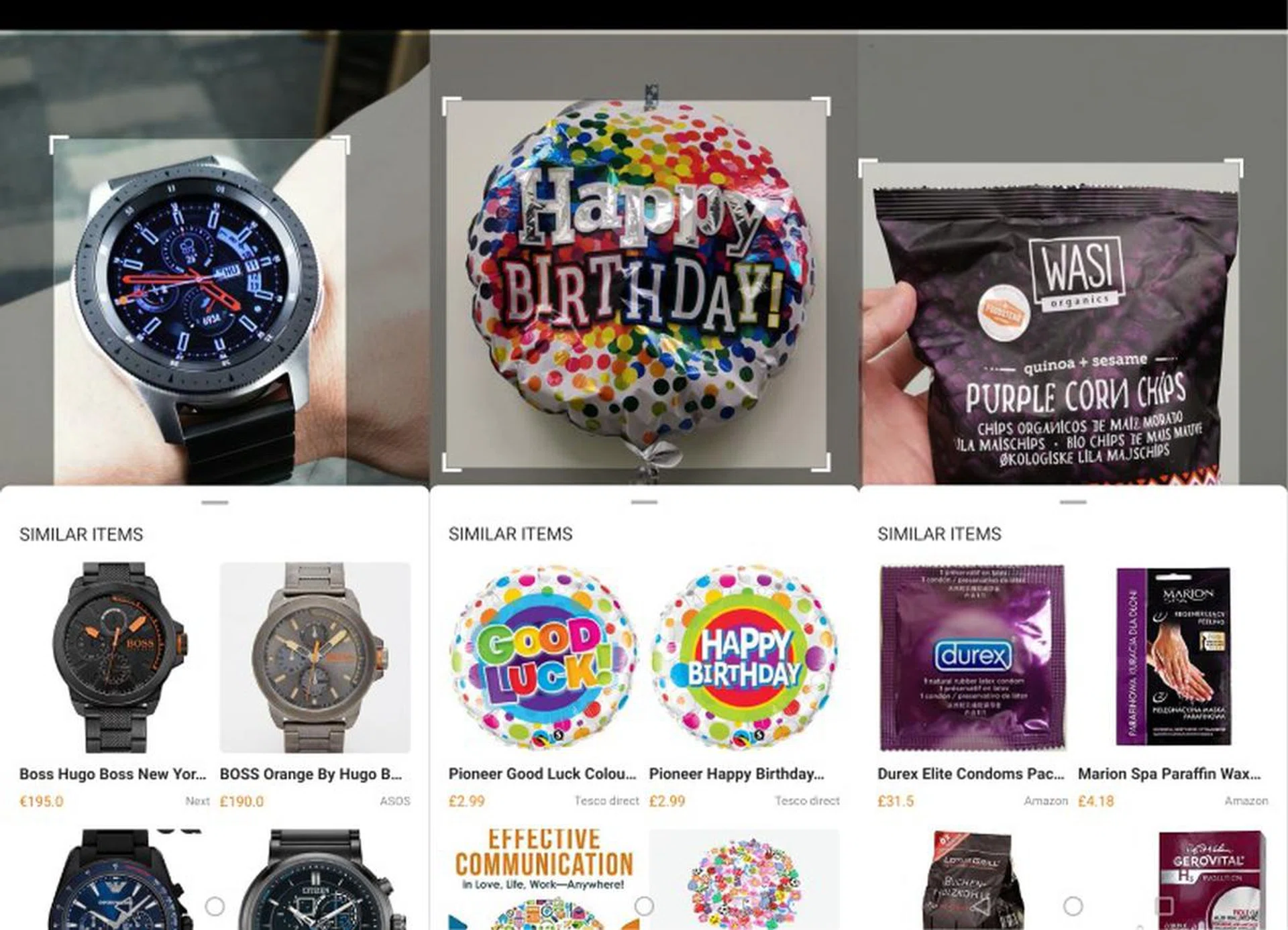Instead of just identifying objects and providing you with more information about them, HiVision Shopping does exactly what its name implies. It will throw up a list of suggested products based on what it recognizes and online resources like Amazon that you can directly buy it from. Again, don’t expect exact results from image recognition technology yet. If you know exactly what you want, you really should just search for it directly from your favorite shopping portal. At best, you can hope for similar items, which is good if you want to broaden your search. At its worst, the results can be hilarious, such as my search for a bag of purple corn chips.