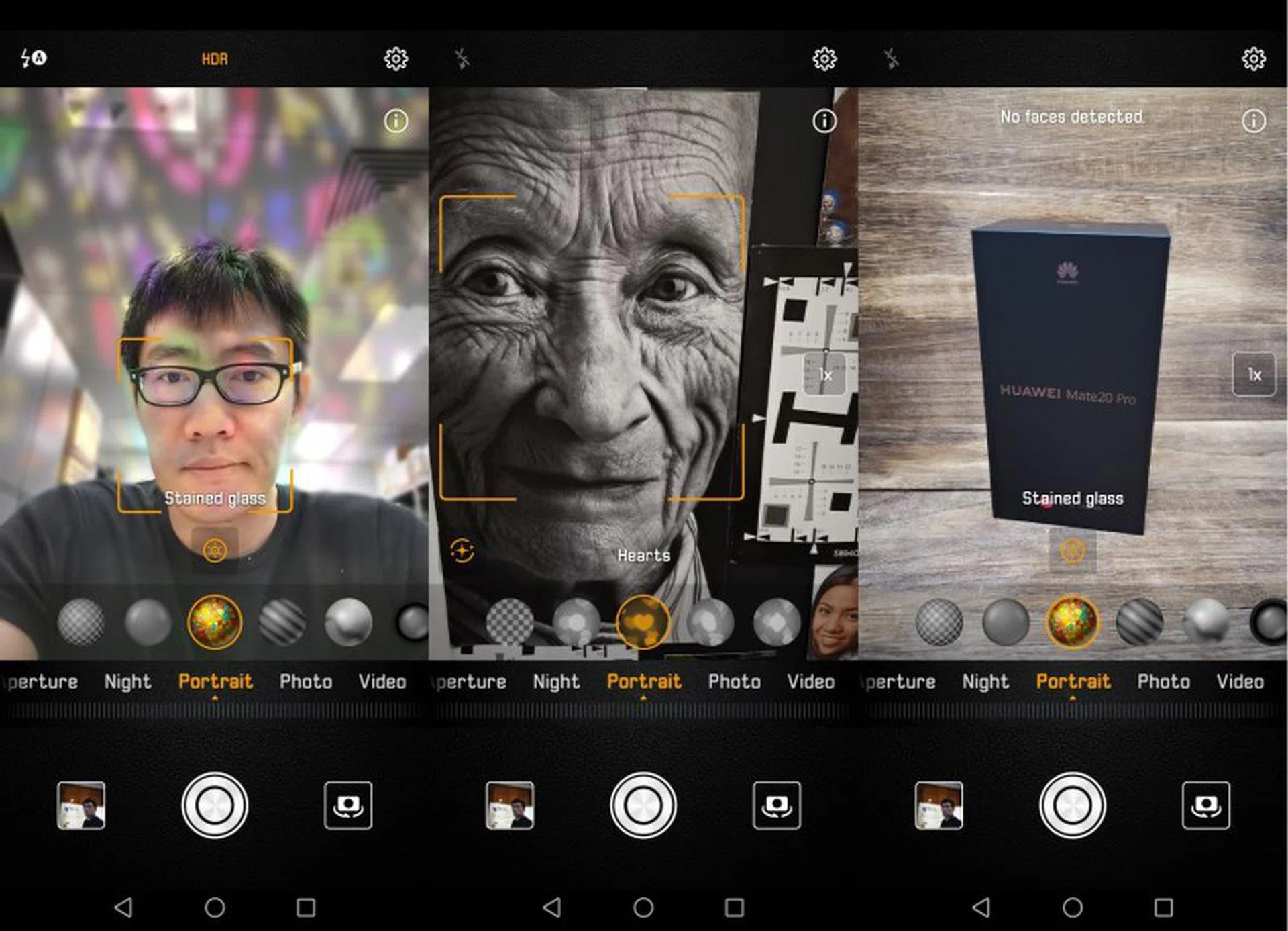 Like the Video effects above, Portrait filters will not trigger on inanimate objects, so you can't just select Portrait and shoot a scenery with heart-shaped bokeh lights for example. You can however, trick it with a picture of a human.