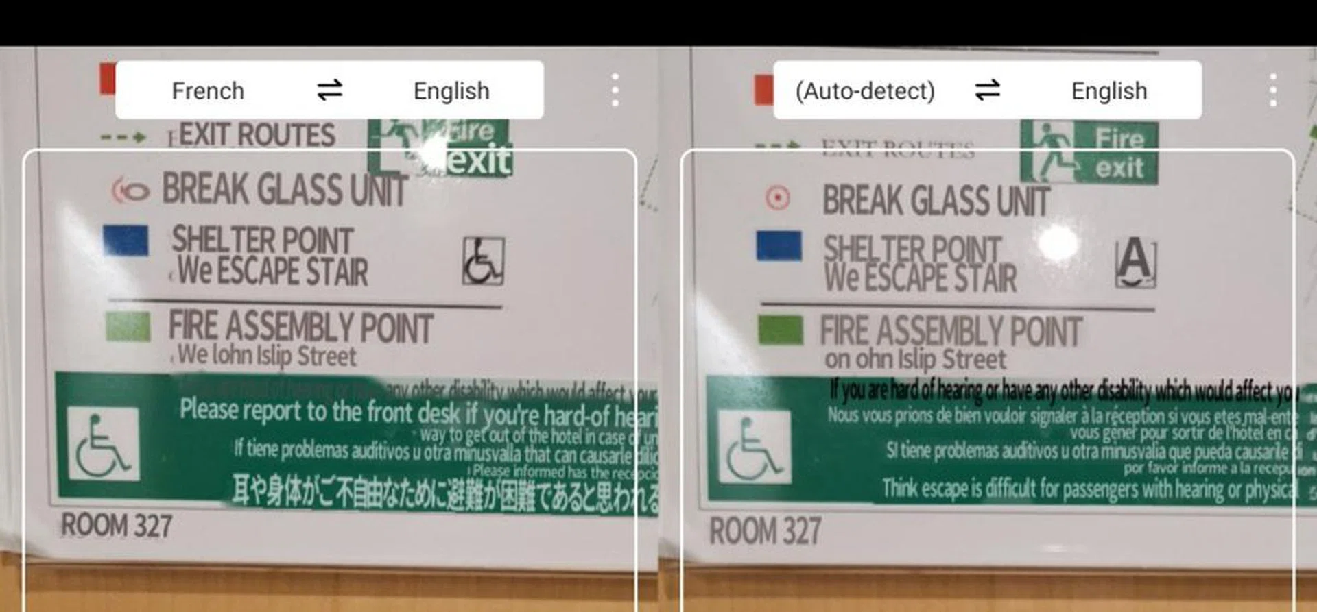 If you’ve ever used Google Translate in the past two years, you’d have come across a similar feature. Simply point your camera at a foreign text, and get real-time translation. Based on its selectable menu options, HiVision currently seems to support ten languages: English, Chinese, Japanese, Korean, Spanish, French, Russian, Italian, German, and Portuguese. From my quick test, if set to auto-detect, it will translate only the first language it detects. Also, the feature can only work in portrait mode.