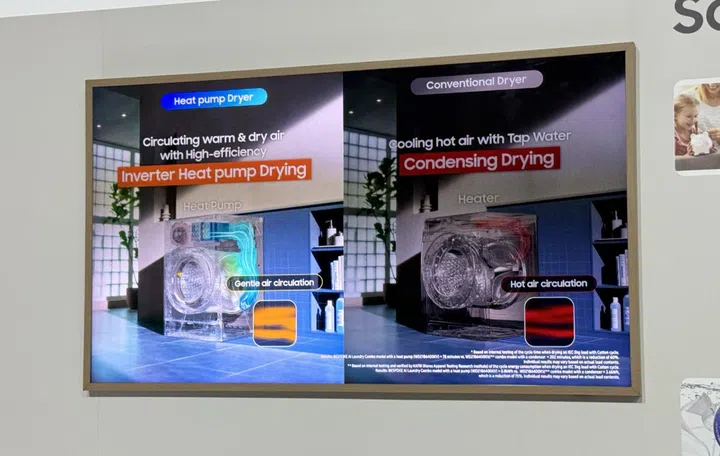 The first demo station highlighted the benefits of the new Bespoke AI Laundry Combo, how it could handle washing loads up to 32 times in a row (see page 5), and the Bixby voice control.