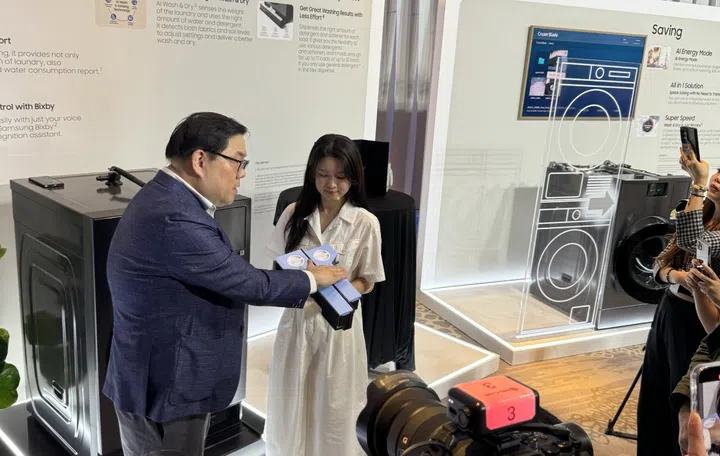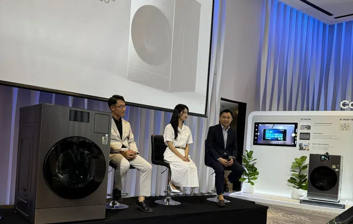 Jongwon Park, Head of Washing Machine Module Lab at Samsung Electronics, Stella Jeong, Living Product Planner at Samsung Electronics, Daren Tay, VP & Regional Head of Digital Appliances for Southeast Asia & Oceania, Samsung Electronics.