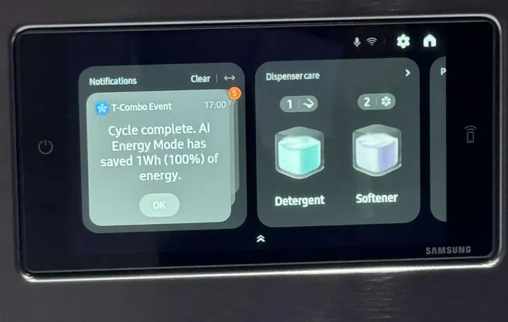 The LCD on the new Bespoke AI Laundry Combo can show a lot of information. This makes it easier to track things like energy usage, so you'll know if you're washing your clothes in the most efficient way possible.