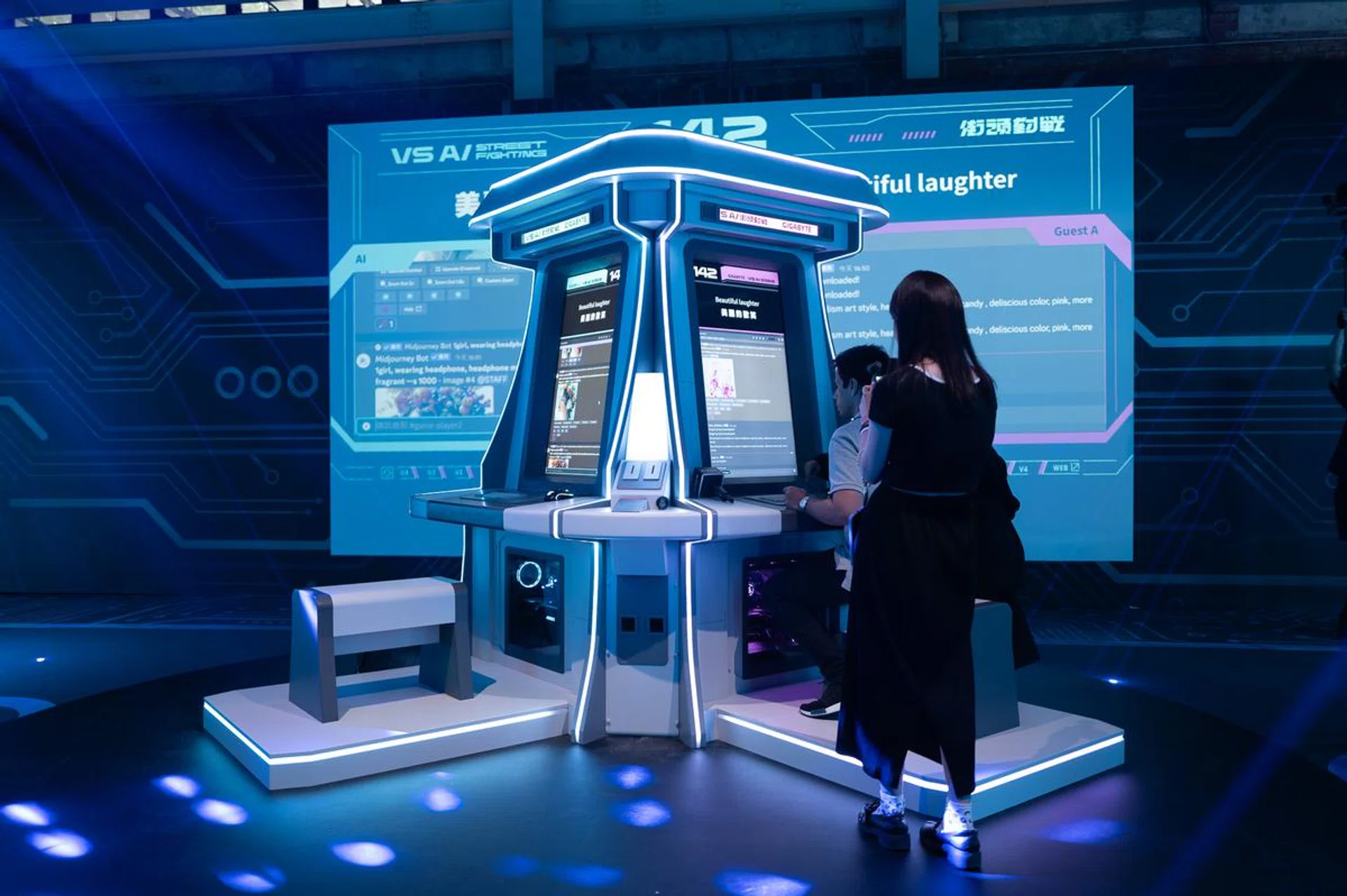 At the VS AI Street Battle room, we were shown an AI interpretation of street fighting. Rather than a fight as you would expect in a typical video game, these battles involved using words to generate AI images based on a given prompt. Two players would then compete against each other or the AI to create the most compelling image, as judged by an AI judge. We played two games against the AI and both times the AI declared us the loser. Was the AI biased? Hmm.