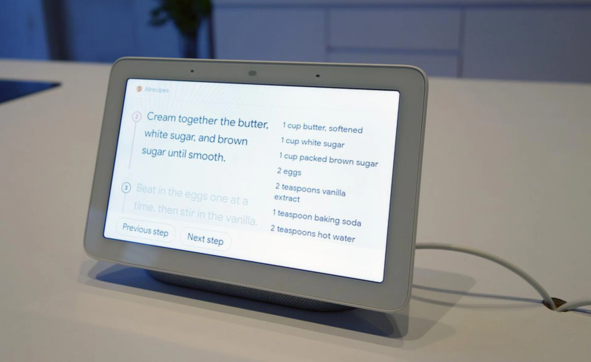 As a kitchen helper, it will display your favourite recipes and its soothing voice commands will step you through your culinary experience. There’s no built-in power supply so the device needs to be tethered to a wall power socket. It isn’t resistant to dust or water, so it’s best to keep the device away from liquids in the kitchen. Hopefully, there's a version of it with some water/dust resistance to better weather more varied/challenging cooking environments.