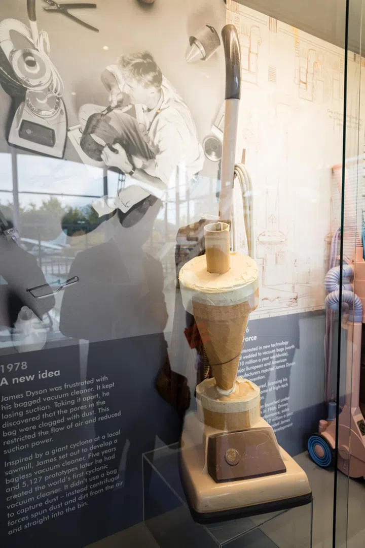 In 1978, James Dyson was frustrated with the performance of his bagged vacuum cleaner. After seeing how a giant cyclone at a local sawmill separated sawdust from the air, he wondered if he could make a new kind of cyclonic vacuum cleaner. It took him five years and 5,127 failed prototypes before he ended up with this — the first working cyclonic vacuum cleaner in the world.