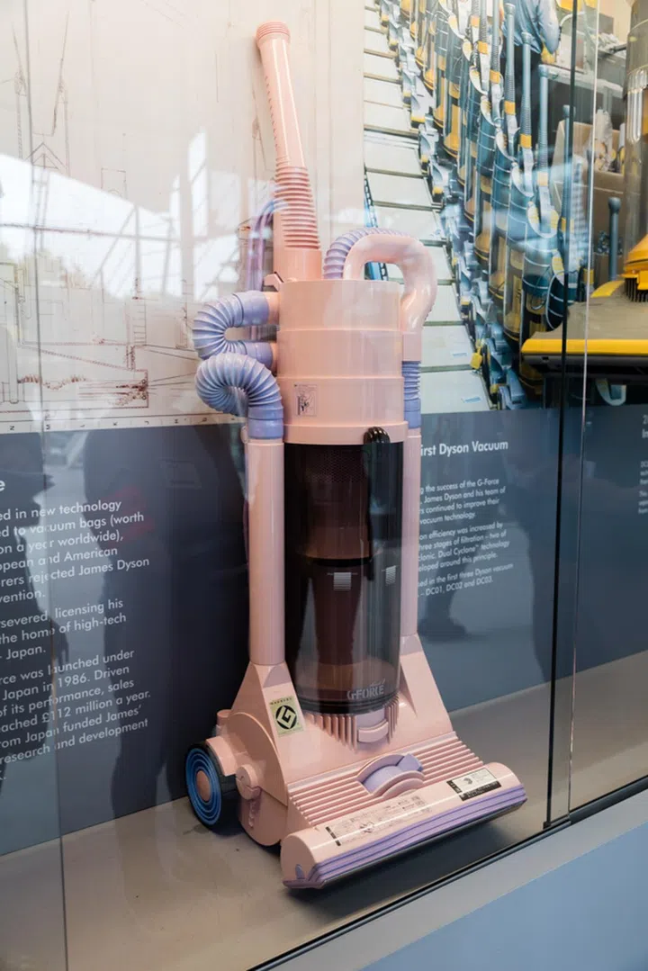 So Dyson licensed his technology to Japanese manufacturer Apex, which came out with this bright pink ‘G-Force’ vacuum in Japan. It was quite the success there and even won the 1991 International Design Fair prize. Dyson used the money he made from the G-Force to eventually release the DC01 under his own name.
