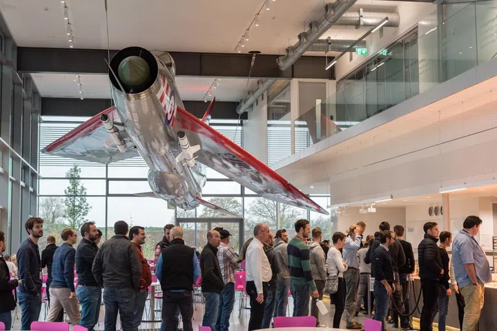 A magnificent 1960 English Electric Lightning Jet hangs fully restored in the new Lightning cafe. The companies who spearheaded the London 2012 Olympics opening ceremony orchestrated the installation of the aircraft, which is suspended using only three connections to the roof. Imagine having coffee right under that beast!