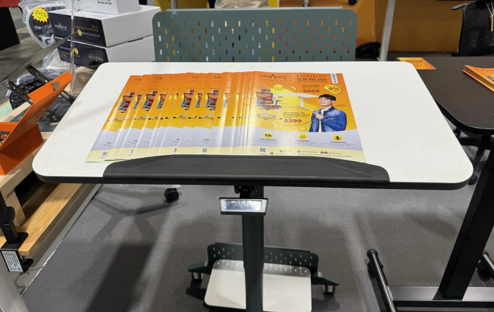 TakeAseat’s M5 Mobile Desk can go wherever you need to do work. Another benefit is that it can raised to a height of 150cm, so it can be used standing up. Able to tilt to an angle of 55° makes it easier to work on. Plus, there is ample room for your notebook and more at 78cm x 60cm. Take a look at it at booth 8535 and buy it for S$S$259 (U.P. S$299). There is a S$30 charge for assembly if needed.