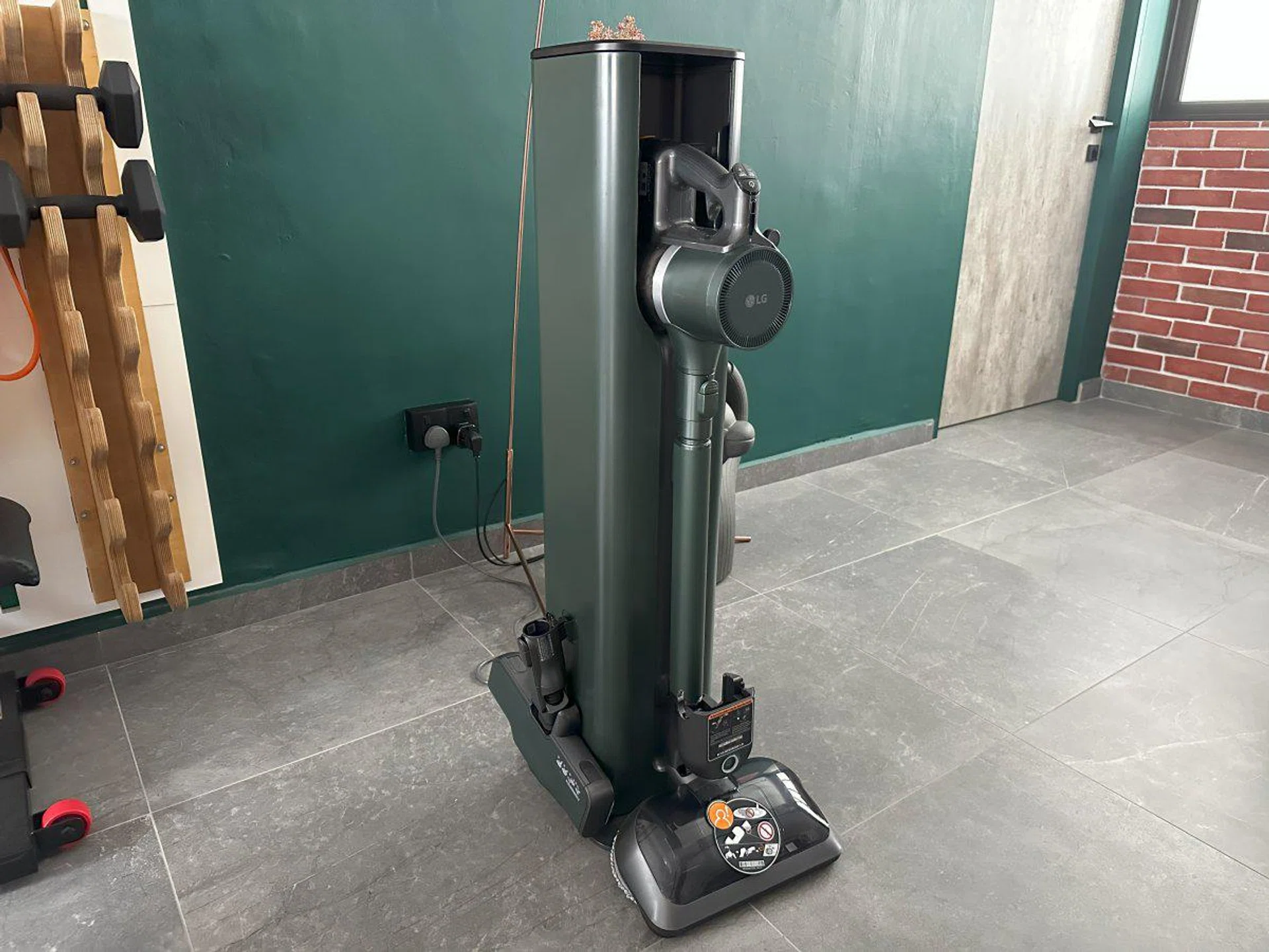 The most noticeable feature upon unboxing is the fact that the All-in-One Tower truly lives up to its name. LG has created this clever puzzle box-like docking station with compartments on every side that houses every single attachment leaving just a clean, green square exterior. This makes the A9T-Steam the most compact and aesthetically pleasing vacuum I’ve used. Extra points for the fact that its Calming Green colourway matches my wall.
