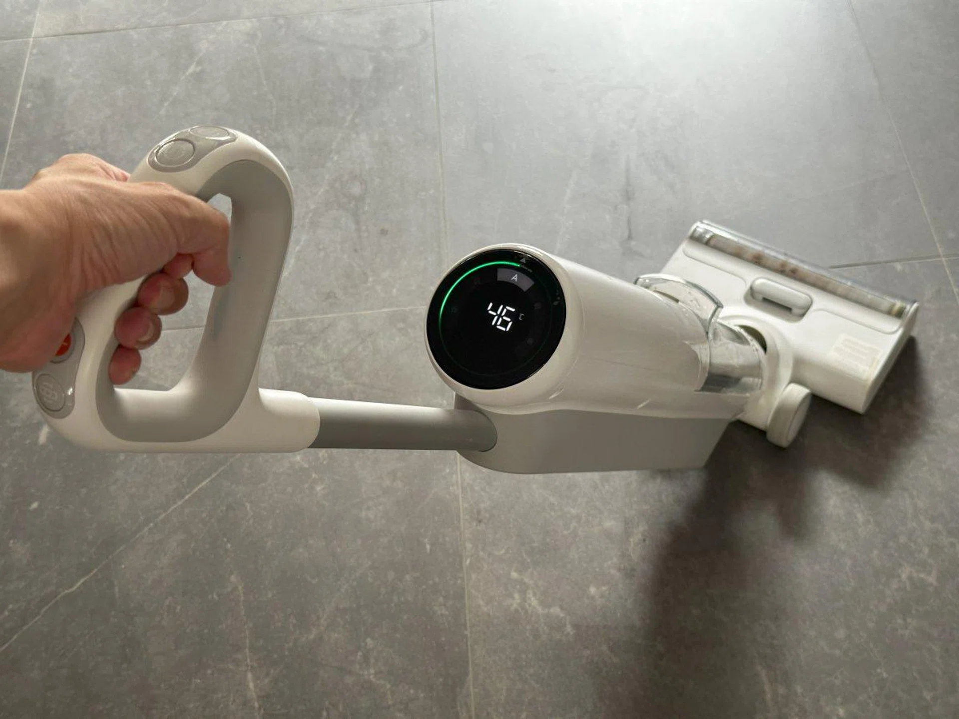 The only caveat here is that the W10 Ultra vacuum unit itself has no heating capabilities. Water is heated at the docking station and then pumped into the vacuum’s reservoir before you start using it. The logic here is that Xiaomi expects you to use the mop immediately, so the water continues to stay hot for the duration of your cleaning. In practice, I found this to work out quite well. If the water in the vacuum is no longer hot, you can press a button on the handle to cycle the water back into the docking station to be reheated. There’s an LED display on the vacuum that will show the current temperature of the water, and if you’re worried that it will cool down too fast before cleaning your home and thus losing hot water efficiency, you need not be. The battery will die before the water cools down.