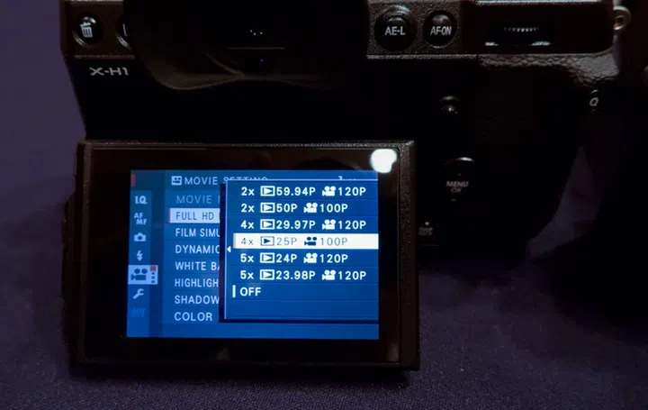 The X-H1 boasts a much-improved feature set for video. It will record 4K videos at up to 15-minute durations, offers a higher maximum bitrate of 200Mbps and the option to shoot F-log internally. Slow motion videos in Full HD are also new options, as you can see here.