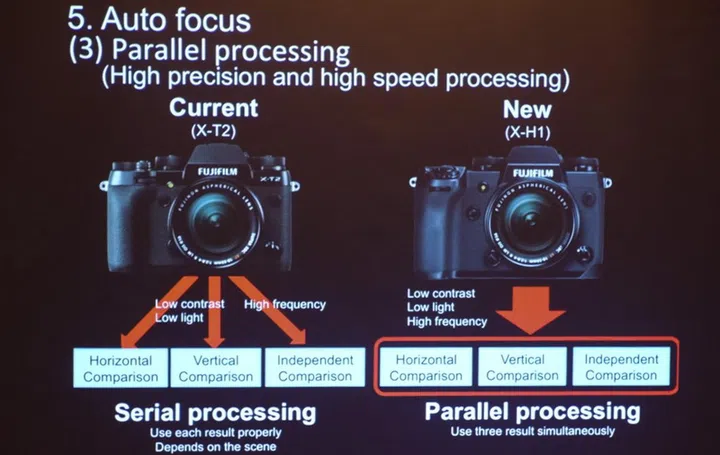 Another reason why the X-H1 focuses so much faster than the X-T2 is that the camera now does AF processing in parallel, producing faster and more accurate results.