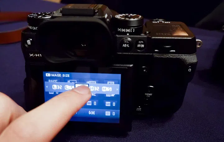 Like the X-T2, the X-H1’s rear LCD also does three-way tilt, and now you get enhanced touch controls, but these only apply in the Q menu and while shooting. Still, this definitely aids the silent movie shooting function as you don’t have to use any mechanical click dials or buttons.
