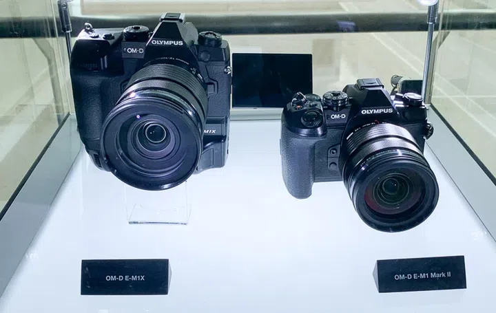 Behold the new OM-D E-M1X! It weighs 997g and measures 144.4 x 146.8 x 75.4mm, easily dwarfing the E-M1 Mark II next to it. The E-M1X has a 20.4 MP Micro Four Thirds sensor, and improved 5-axis IBIS stabilization to give you up to 7.5 stops of compensation when paired with appropriate lenses.