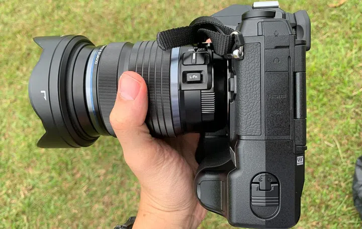 In line with the camera's focus on speed, there are two high speed UHS-II SD card slots with the OM-D E-M1X. It's good to note that there's a lock on the cover to keep them more secure.