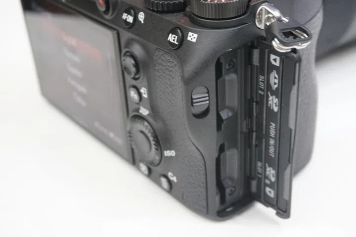 Dual card slots are available on the A7R III, with Slot 1 capable of supporting the faster SDXC UHS-II format cards. That gives you a top write speed of 299MB/s and a top read speed of 300MB/s.