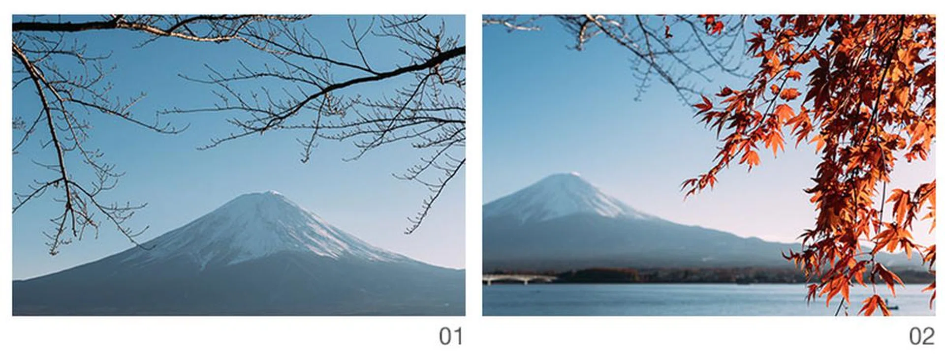 When you talk about Japan, you have to talk about Mount Fuji at some point, right? I have some other straight-on photos of Mount Fuji, but I chose this one to start the series, because this shot combines both an icon of Japan and a clear indicator of the season I visited it in. Introducing these two elements first helps to set the scene, and establish the period.