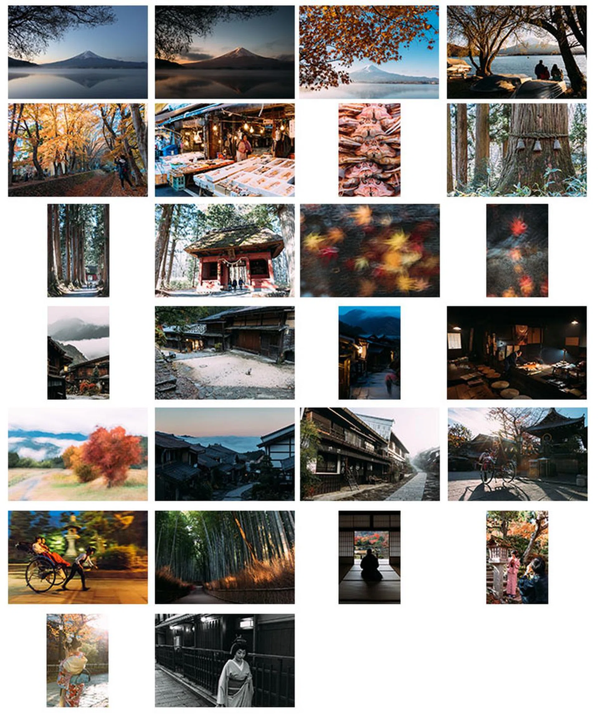 Over these 10 days, I shot over 4,000 frames. There are about 70 that I like, and then there are these 11 that I really like. I didn't share some of the photos I love just as much as these 11, because while they’re strong photographs, they don’t fit into my theme of old Japan. Having them in the series would make the entire body of work weaker. Take a look at the collection above, compared to the collection I showed you below. Which is stronger? Does having too many shots of the same subject, like Mount Fuji, dilute the overall body of work? In this case, is less more, or do you think there's far too little? Which do you prefer to show, if this was your work? Which would you prefer to see, if you were the viewer?