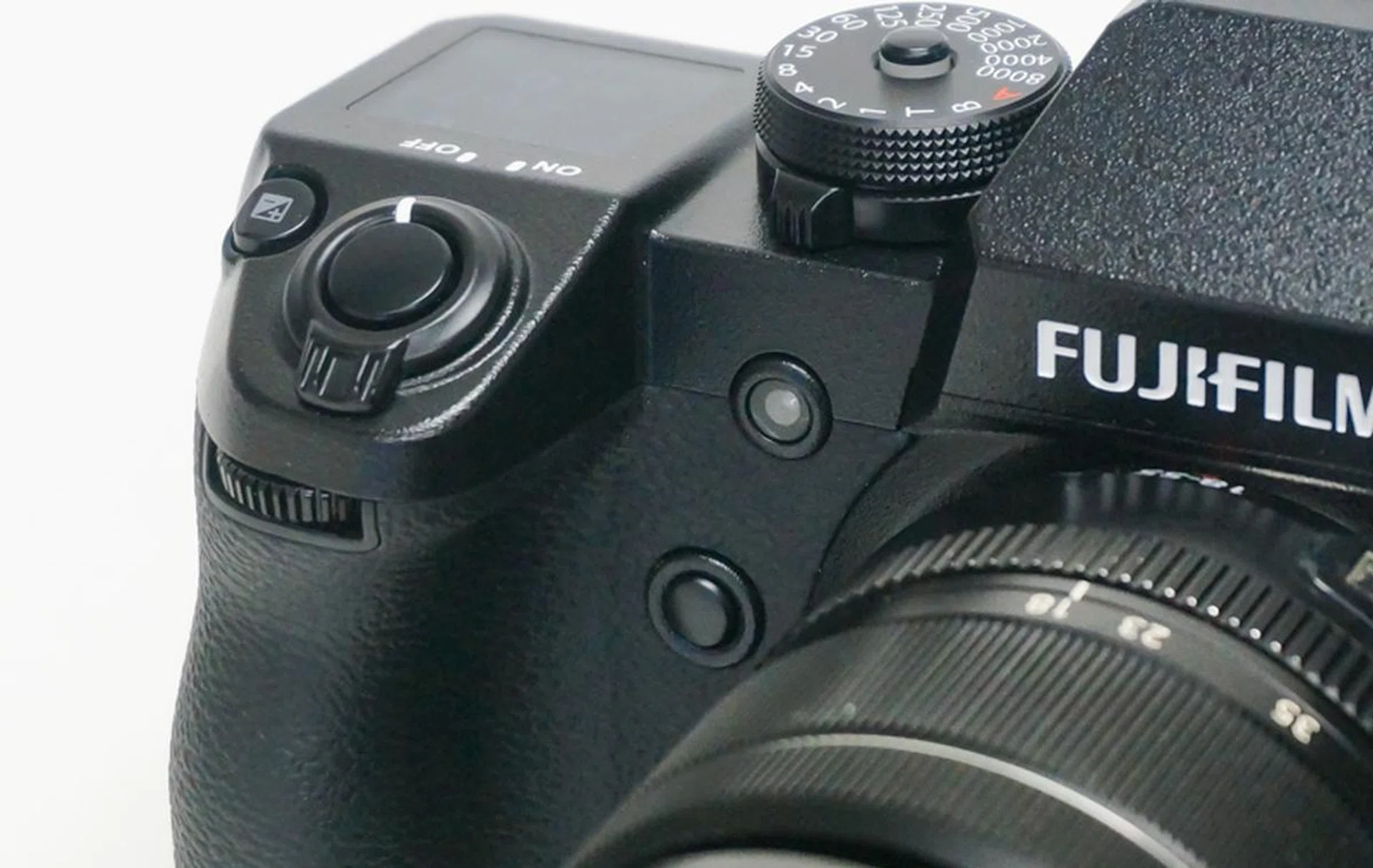 The top display panel seems to be the same as the one we first saw on the GFX-50S, and gives you a nice clear indication of what your key camera shooting parameters are set to. It works well in bright light and reverses from white-on-dark to a dark-on-white display for better viewing in dim light, which is a very thoughtful touch.