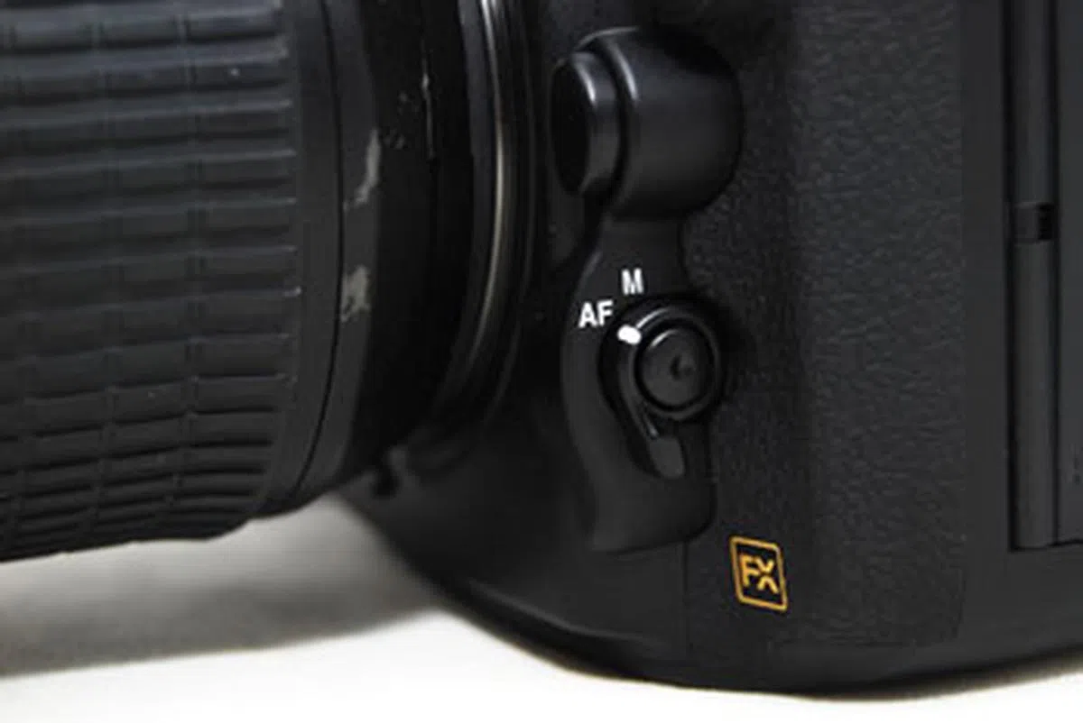 The focus-mode selector lever, first seen on the D7000 and then the D4, reappears on the D800. The lever switches between auto and manual focus, while the unmarked button on top of the lever lets you switch between the different AF modes by pressing down and turning the command dials. While we originally didn't love it on the D7000, we've since grown used to it, and it does allow you to change AF modes by feel without having to take your eyes off the viewfinder.
