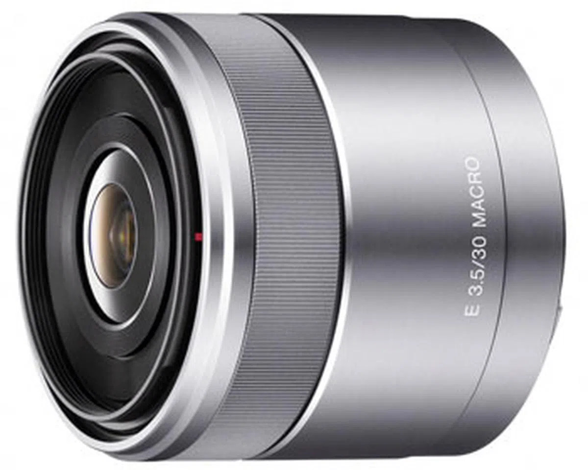 Sony claims that the newly announced 30 mm F3.5 macro lens is the world's lightest (138 g) life-size macro lens for an interchangeable lens camera. It features a 1:1 magnification ratio and a minimum working distance of 2.4 cm; and uses one ED glass and three aspherical lens elements.