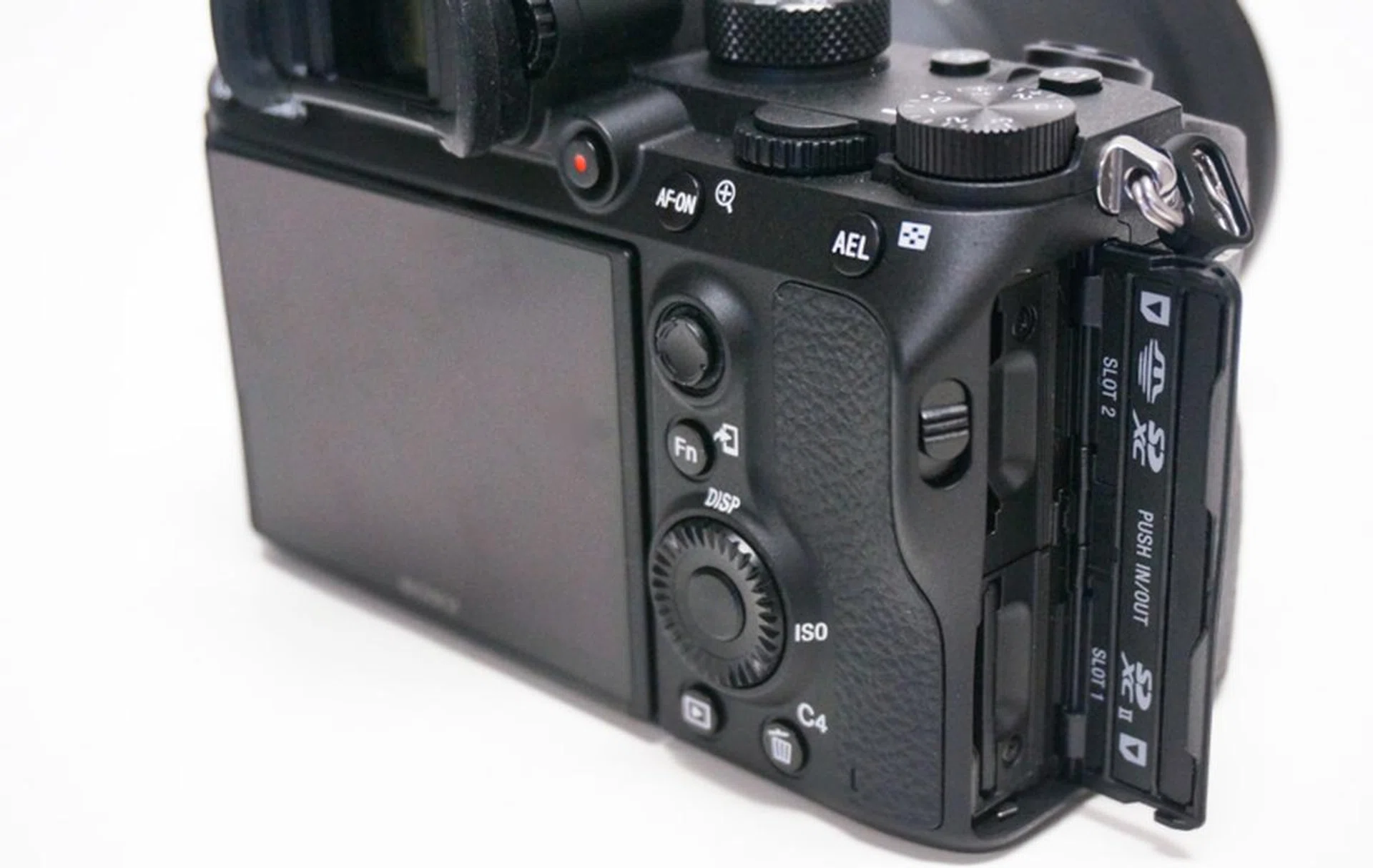 The A7 III also has dual media slots as opposed to one on the A7, thus allowing you the option of having your images simultaneously backed up to both cards; separate stills from movies; RAW from JPEG, or to simply have more storage space. As with the A9 though, only one card slot (Slot1) supports the faster UHS-II type memory cards. One thing we do like though; is that the memory card cover on the A7 III is lockable, so you won’t have to worry about accidentally opening it.