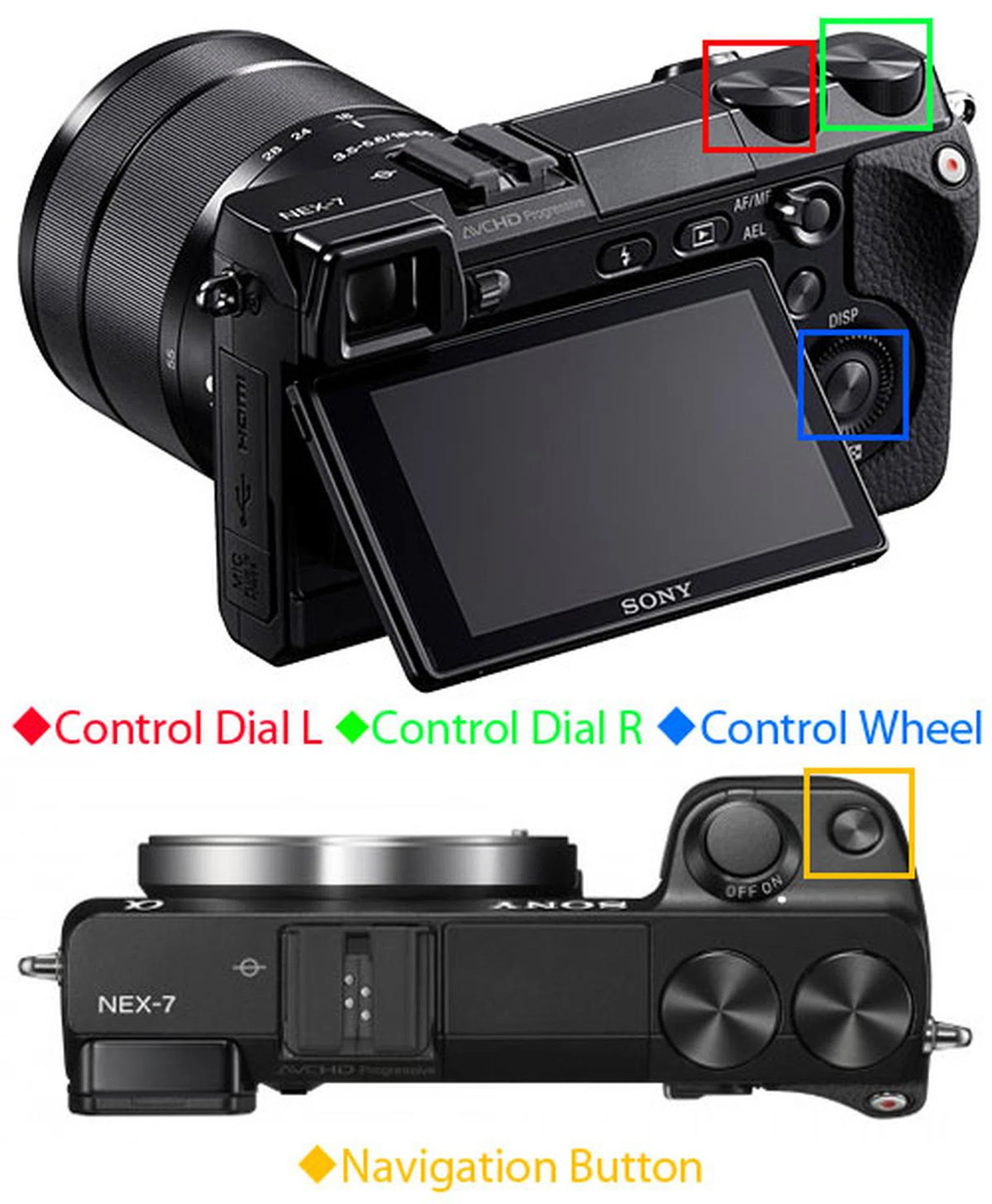 Custom | - | Assign any of the following to the dials/wheel: Exposure Compensation, Autofocus Mode, ISO, Metering Mode, White Balance, DRO/Auto HDR, Creative Style, Picture Effect, Quality, Not Set. |