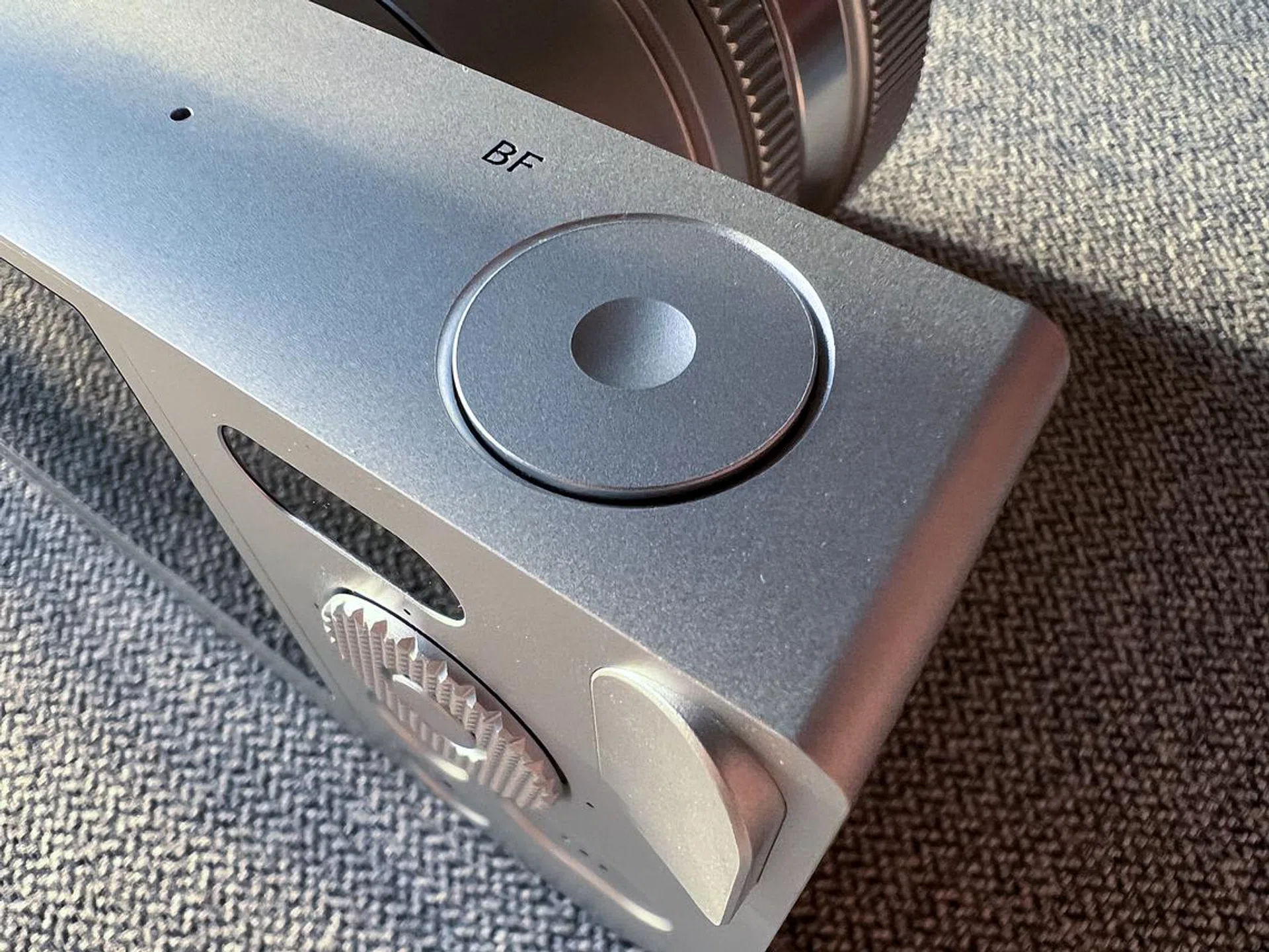 At the back of the camera, a small status monitor sits above the knurled dial wheel and beside a minimal thumb rest. In front, there isn’t much of a grip apart from the knurled texture. Depending on how you hold your camera and how strong your fingers are, you might feel tired holding the BF for long periods. I’m sure accessory makers will be coming up with grips for this camera soon.