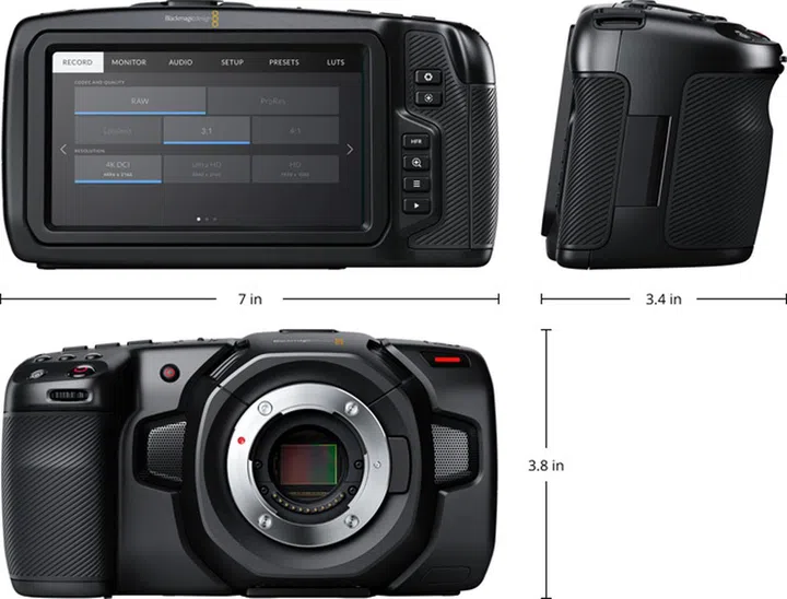 The Pocket Cinema Camera 4K uses a 4/3 sensor and boasts up to 13 stops of dynamic range.