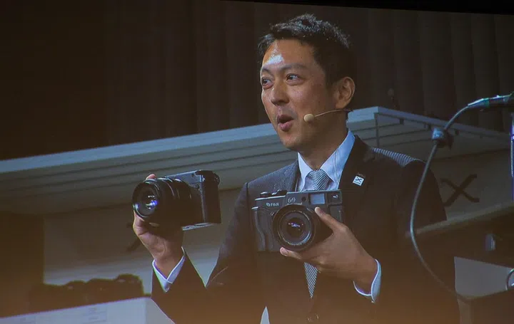 Toshi Iida (General Manager, Optical Devices & Electronic Imaging Products Div) took to stage next, saying that mirrorless cameras should be free from the "old legacy" of traditional DSLR cameras, either through performance or through convenience. Thus, he says there is no need to go the middle ground of Full-frame with Fujifilm - you can choose either the APS-C sized X-series cameras for speed, or their medium-format GFX cameras for ultimate quality.