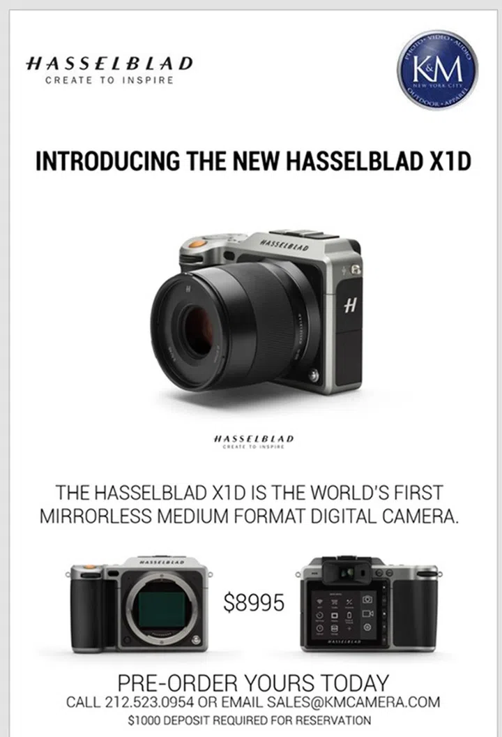 PetaPixel and FujiRumors have both posted what appears to be an early banner showing off Hasselblad’s latest medium format camera - the X1D – and it’s unique that it is being advertised as the world’s first mirrorless medium format digital camera.