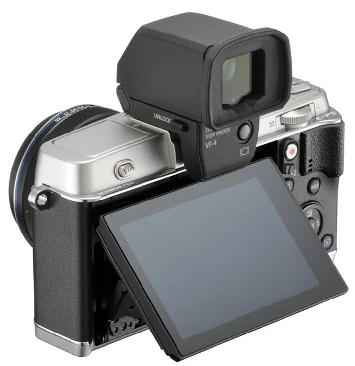 Olympus has also announced a new electronic viewfinder, the VF-4, which has a finder magnification of 1.48 (0.74 equivalent for 35mm cameras). The VF-4 has been specifically designed to provide sharpness and natural color reproduction from corner to corner. An eye sensor helps switches automatically from the rear LCD to the viewfinder and Olympus says the screen has a lag time of approximately 0.032 seconds only.
