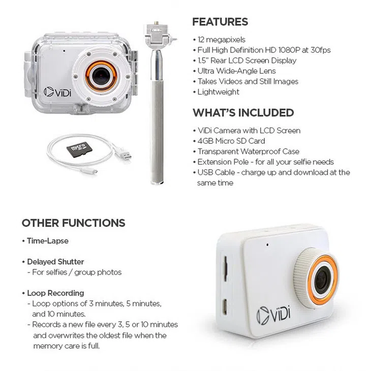 The ViDi Action Camera is a simple and inexpensive videomaker