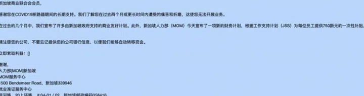 Cyfirma said that they managed to discover one of the email templates used by the hackers, where the misleading spoof pretends to be the local Ministry of Manpower offering additional Covid-19 payouts to businesses. Below is the retrieved email template, along with the English translation.