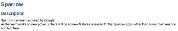 Sparrow, makers of the very popular desktop Gmail app for Mac and also for the iPhone, has been acquired by Google over the weekend.